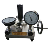 打开油杯阀门,油杯里灌满规定的介质,左旋手摇泵手轮使其充满油液,关闭油杯阀门,打开其它阀门,上下压手揿泵,使压力表内充满油液,然后右旋手摇泵手轮,使其达到校验压力进行调校。